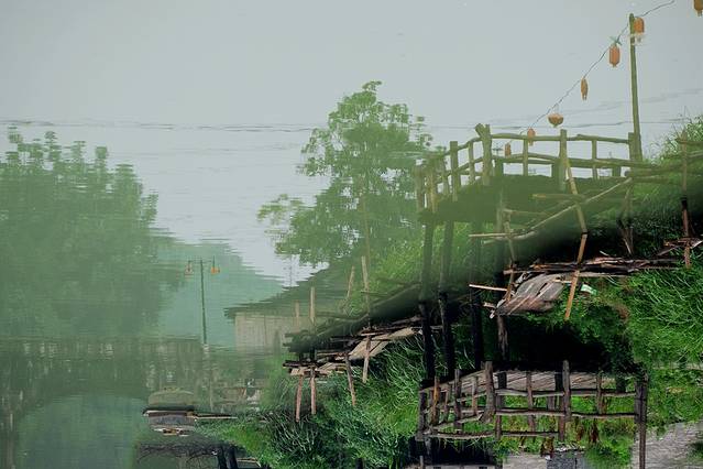 现在除了虹桥,在她的上下游又新修了“风、雨、雪、雾”四座景观桥,让这里的夜景更加绚丽夺目。