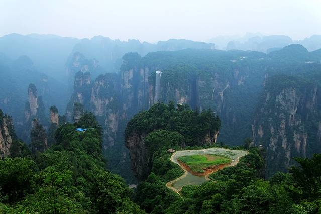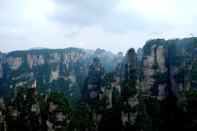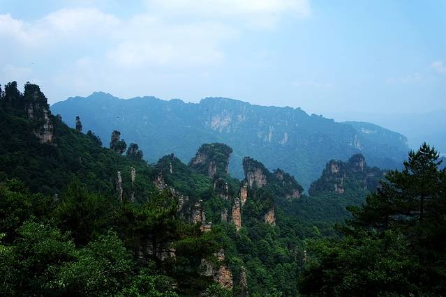 虽然大家都不满意,但是绝美的景色还是给我们留下了深刻的印象,因为什么日出、日落、云海、云雾等传说中的美景一律没看到,就连清晨、黄昏的景色也没时间去看,所以心中一直耿耿于怀,想着有机会能再去好好玩一下张家界。这次开车回湖南老家,又可以绕道去一下张家界,这机会可不能错过。但看了那几天的天气,一直有雨,还不是那种能看到云海的大雨,所以特别担心。上网下载了攻略,看了半天对具体的线路和景点安排也没有底,山上的住宿也因为不了解情况,不知道住哪里合适,几乎都想放弃了。