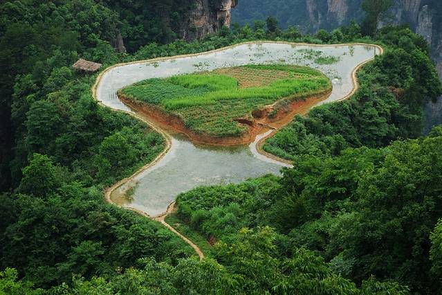 虽然这片梯田很小,但是让张家界景区群峰林立的风格里面出现了另类的画面,还是给人很惊艳的感觉。