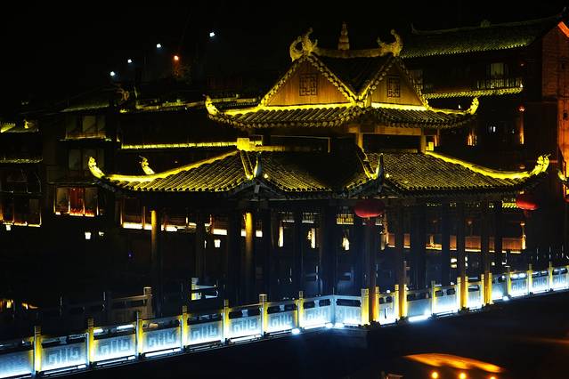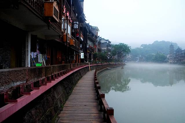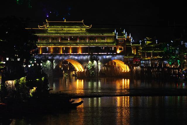 毕竟古城的旅行就是为了体会惬意和悠闲,为了这点钱白天沱江边也不能靠近,里面的古迹都不能进,还是觉得没有必要吧。另外门票里面还包含了沱江泛舟,可以坐着月牙形的小船泛舟沱江,穿过美丽的虹桥,两岸的吊脚楼,错落有致,那画面还是很震撼的,这是凤凰古城才有的独特味道。