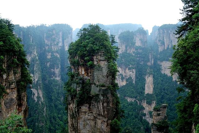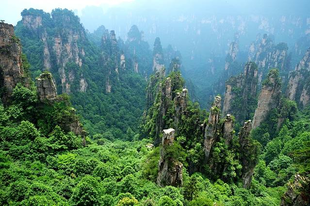 武陵源景区在山里,这里的天气是很难捉摸的,尤其是多余的季节,天气说变就变,很可能上了山,发现雾蒙蒙一片,啥也看不见。所以来这里游玩,首先是要安排好时间,然后要看个人的运气。武陵源的景点最大的特点就是同一个景点不同的时间去看到的景色完全不同,清晨、黄昏、上午、下午、晴天、雨天、雾天,同一个地方给人的感受却大不一样,就算同一个时间,同一个地方从不同的角度看,也会形成完全不同的景点。