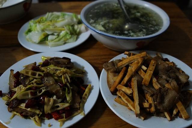 这是农家晚餐,便宜可口,两个人吃了个精光,我还干了两大碗米饭,舒服。