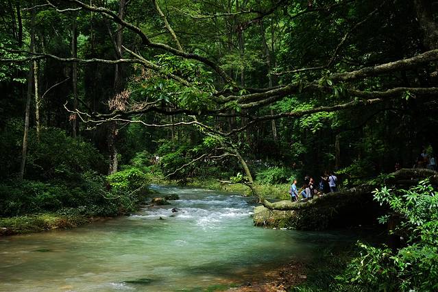 这里大家完全可以跳着走,因为水不深,可以顺便游个泳。