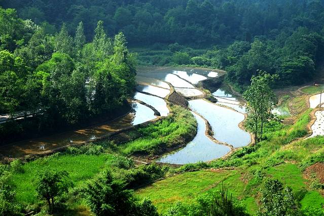 田园三面悬空,峰峦叠翠,如果赶上云雾缭绕的时候,就更像一幅气势磅礴的山水画。要是登上“空中田园”,清风拂袖,云雾裹身,如临仙境,使人有青峰鸣翠鸟,高山响流泉,身在田园里,如上彩云间的感觉。