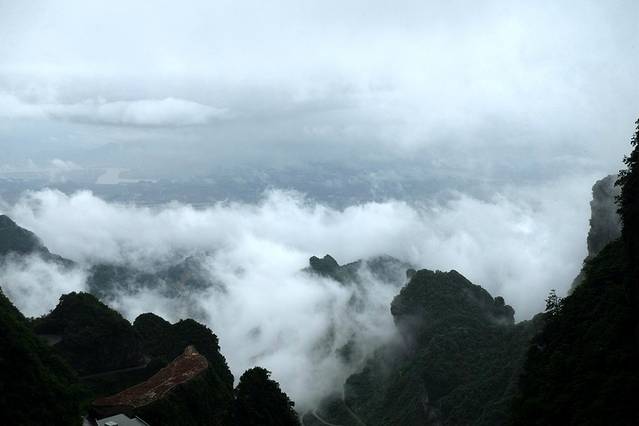 快中午了还是有点小雨,本来天门山应该放弃的,但是因为上次就错过了,这次实在不想再一次错过,抱着万一有云海的期望,还是上了天门山。结果虽然也还算勉强可以,但远远没有领略天门山的雄奇。