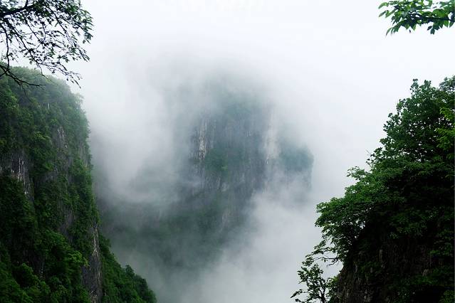站在栈道上俯瞰群山,这才是真正“会当凌绝顶,一览众山小”的感觉,天气不好的时候更要拼运气了,有时候走到一个地方刚好能看见浓雾散去,还没拍几张照片,雾气却又从山谷里面升起来了。