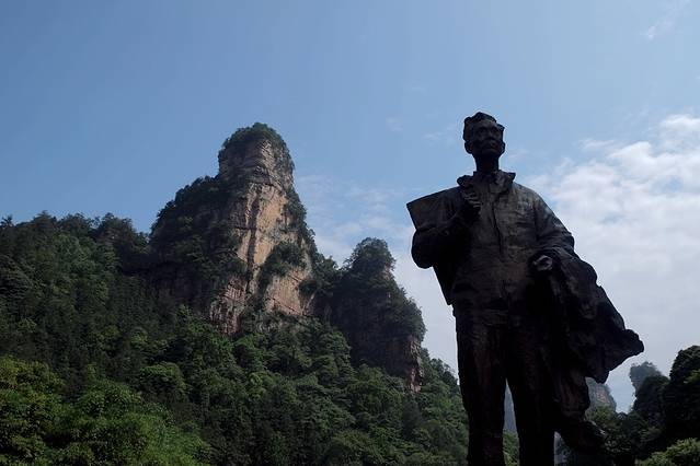 坐环保车去天子山的贺龙公园。天子山景点特别多,但去的时间一定要掌握好,像昨天晚上我们去得神堂湾和点将台,因为上午逆光,所以要下午去,而这个贺龙公园是欣赏张家界峰林的绝佳地点,上午顺光,下午就逆光了。