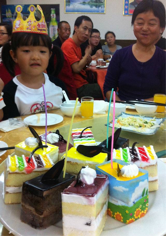 18日上午11:20左右北京出发-16:50左右到青岛,历时近5小时,一路上大家伙热热闹闹,大人凑一起打牌,小朋友凑一起 IPD看动画。到了酒店已傍晚大家稍事休息就去集体吃晚餐,由于这天是我家娃的阴历生日,小朋友吵着吃生日蛋糕,几个小伙伴也起哄,由于天色已晚加上马上过节,青岛开门的商店已经很少,跑了好几条街才给宝贝儿买了几个小蛋糕,没有让宝贝儿失望,很特别的一个生日哟,小朋友一起给唱生日歌,虽然蛋糕是拼凑的但是宝贝很开心。集体晚餐后,我们没有尽兴,我们一家又出去吃了一顿海鲜大餐,喝了青岛的原浆啤酒~吹着海风~一个爽字了得。
