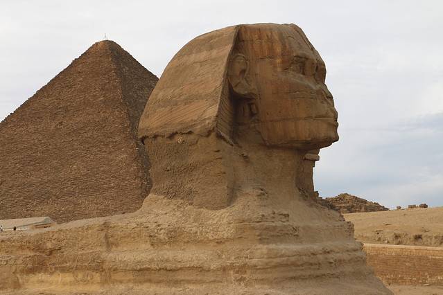 狮身人面像受到来自撒哈拉沙漠风沙的侵蚀,在历史上很长的一段时间曾完全掩埋在沙漠里。