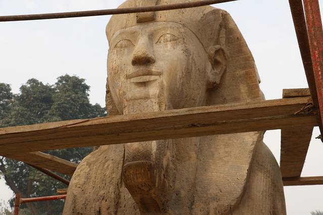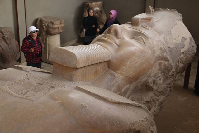 早上8:00匆匆用完早餐便离开位于吉萨(距开罗约10公里)昨晚下榻的酒店,穿过吉萨市区混乱拥堵不堪的街道首先乘车前往以南30公里外的孟菲斯,开始了穿越时光隧道探寻古埃及法老王神秘世界震撼心灵的一天。