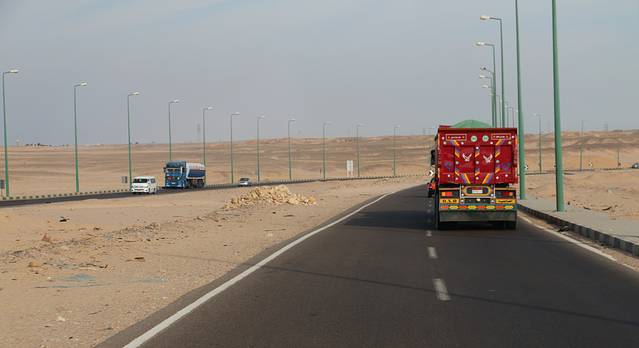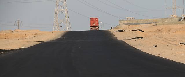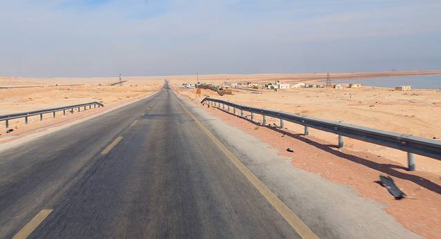 公路左边远远地可以看到埃军预警雷达的球形天线和掩体