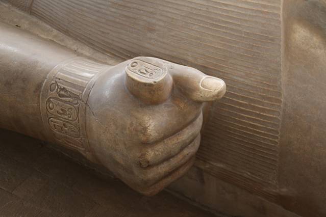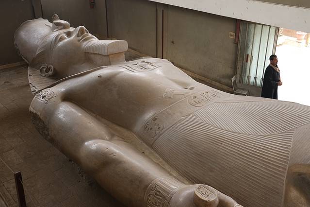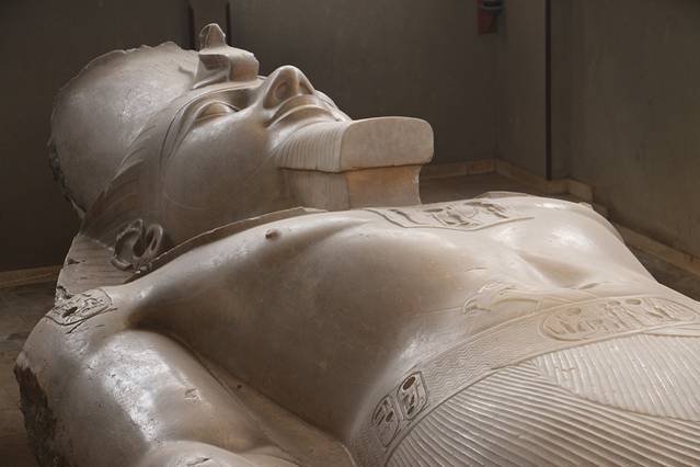 静躺在简易现代建筑内的拉美西斯二世巨大雕像。