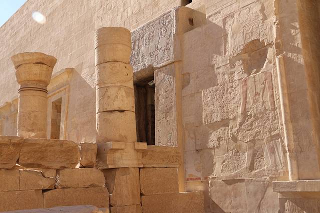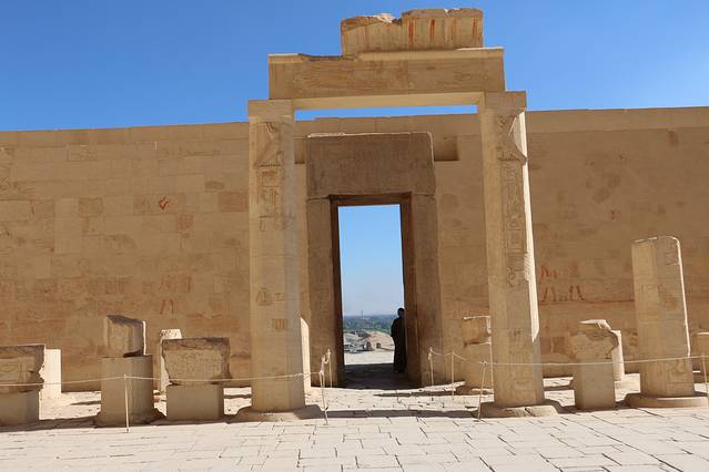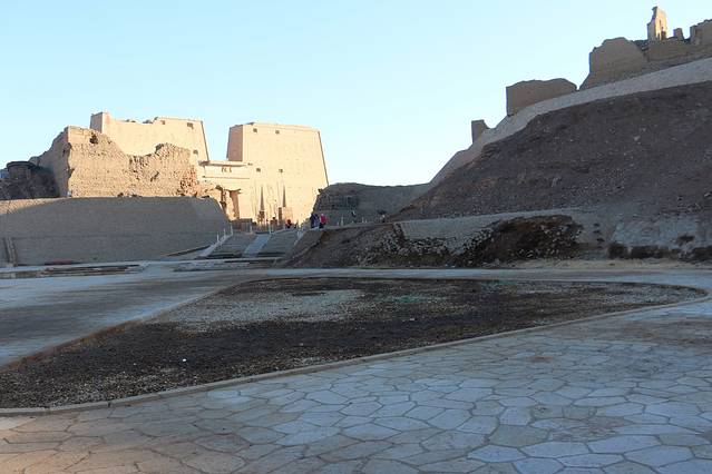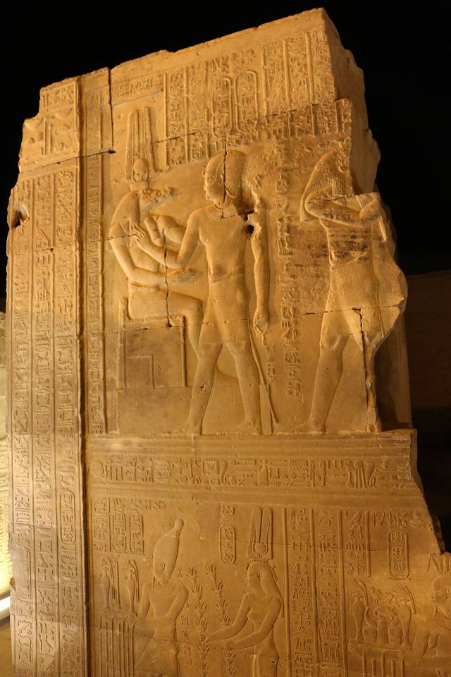 一进门是散布着出土于神庙废墟石雕残件的露天小广场,这样的石雕在埃及可以说遍地皆是,但其中的三件却绝对不可檫身而过。