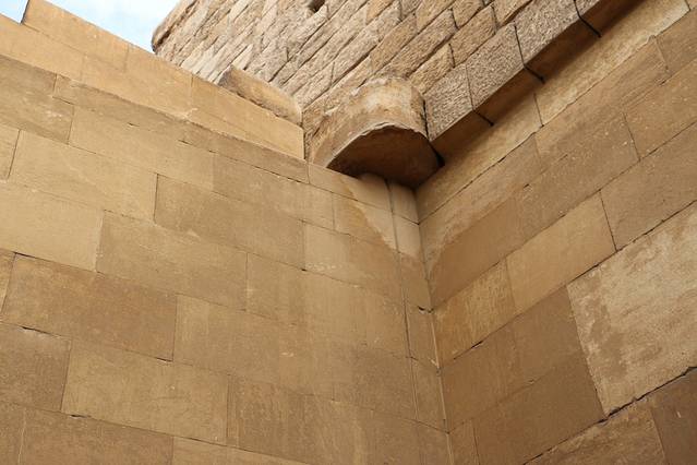 金字塔表面原本覆盖着平整的白色石灰石外壳,我们不难想象在太阳底下闪闪发光的金字塔该是何等的瑰丽壮观!