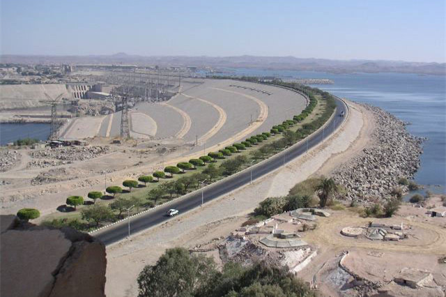 阿斯旺高坝(英国统治时期在下游建有一个低坝)于1960年在前苏联援助下开工,历时十年建成。全长3830米,高111米。