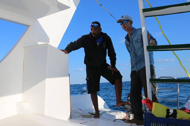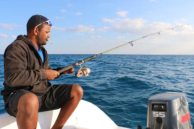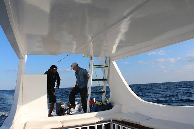 哈桑帮我整理好钓具,穿上小块的章鱼肉作钓饵