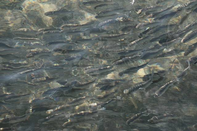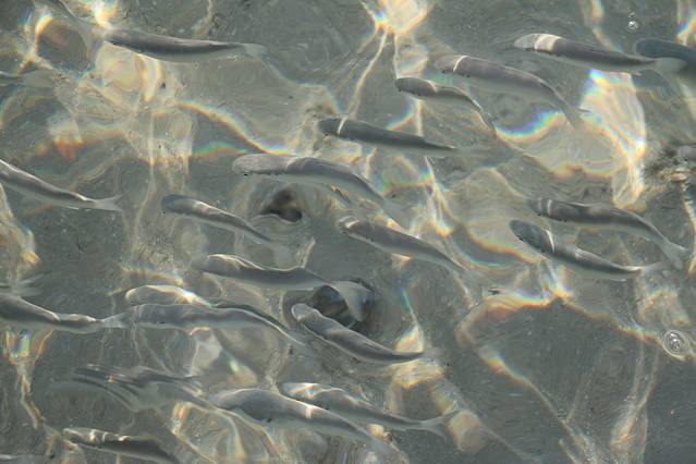 根本不用浮潜就可以清晰看到成群的海鱼。