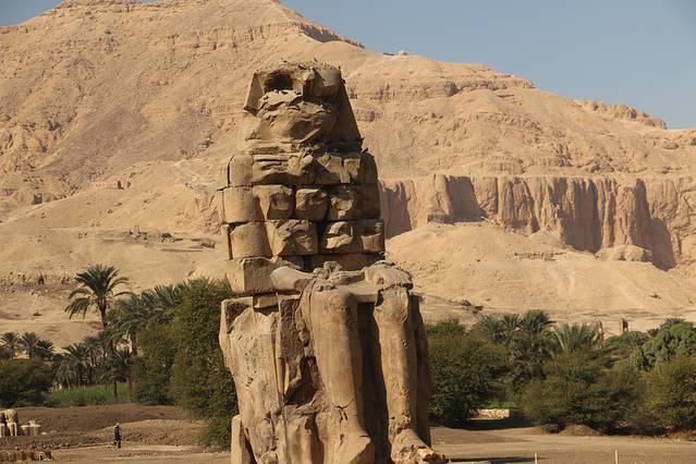 雕像由整块石灰岩雕刻而成,原高14米,因在一次地震中足部损毁现高10.3米。雕像雕工精美打磨光洁细腻,人体比例准确,服饰精致虽历经3200多年风沙侵蚀仍难掩其惊人的魅力。