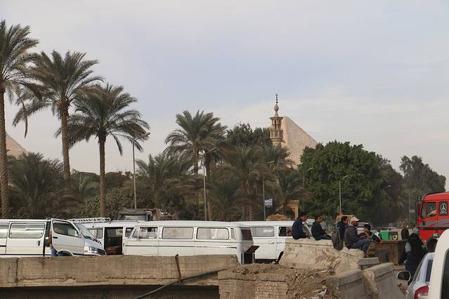 已经望见金字塔了,心情开始激动起来,可前面的道路依然混乱拥堵。