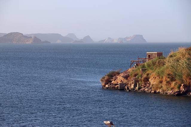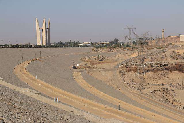 大坝西端,远处是阿斯旺大坝纪念碑。