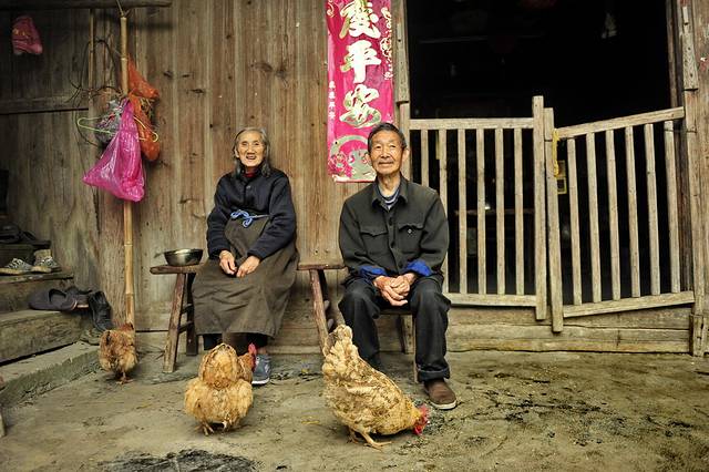 我们和老阿嫲聊了起来,原来,他们老夫妻俩都已经80几岁了,没看出来,真是好山好水养好人哪!看到我们的相机都对着自己拍,老阿嫲索性放下手里的活计,喊来老伴儿一起坐在墙根儿,笑咪咪的让我们拍个够。
