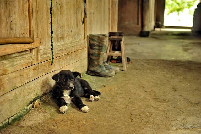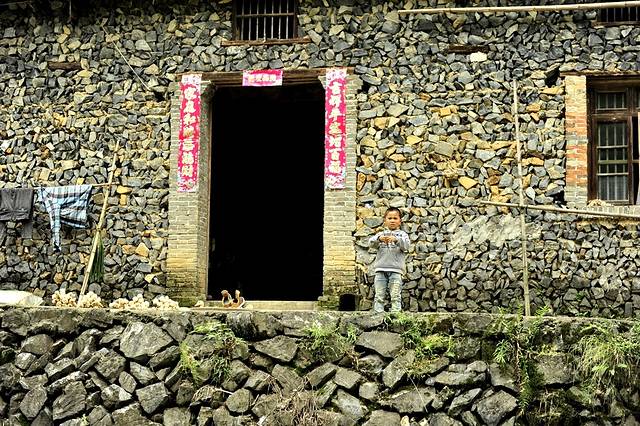 随便走进一个小院,木栅栏,木板墙,玫红的门联已经褪色,三两只鸡,逍遥自在的绕着正在削土豆的老阿嫲身前觅食,一幅安逸的乡村人家的画面。