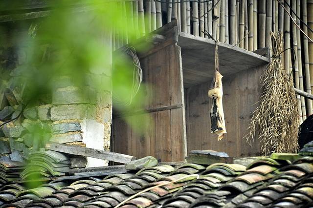 在村中小道信步走来,可以看见许多农舍檐下悬挂的腊肉,那可是山里人家自制的美味。