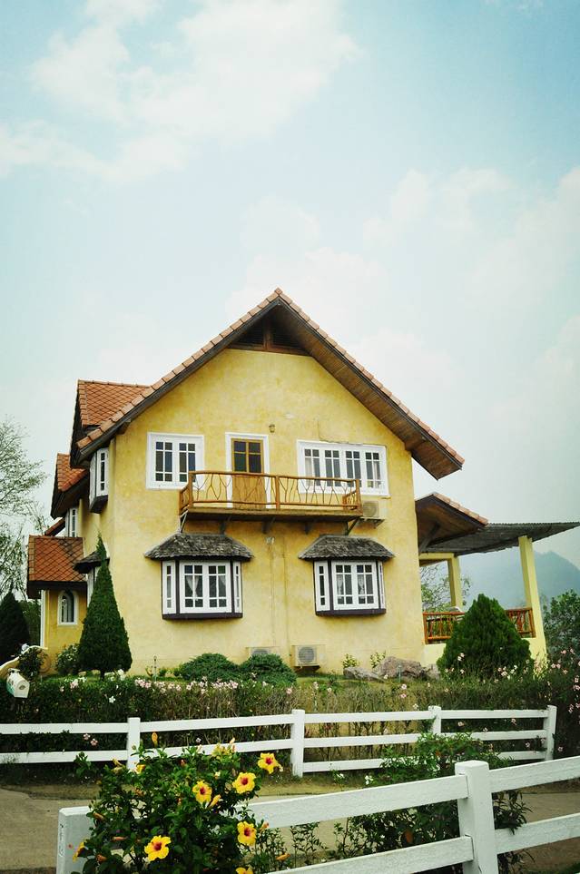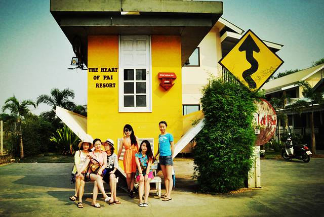 这家酒店门口有一个倒立的小黄房子,是来了PAI可以跑来拍照留念的“景点“之一,也是我们入住的酒店门头,一间房100多人民币,走进去全是一幢一幢两层楼高的小别墅,性价比超高。从酒店步行至PAI的城中心也就几分钟的时间,因为这里实在是太小了!