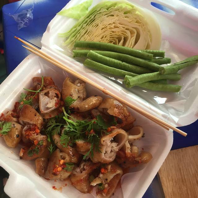 烤大肠与猪颈肉也是我们在小巷子里发现的美食,50猪一份,配上他们秘制的料,完全停不下来!
