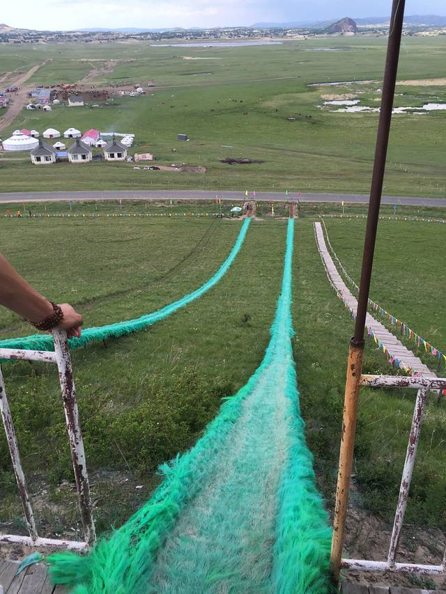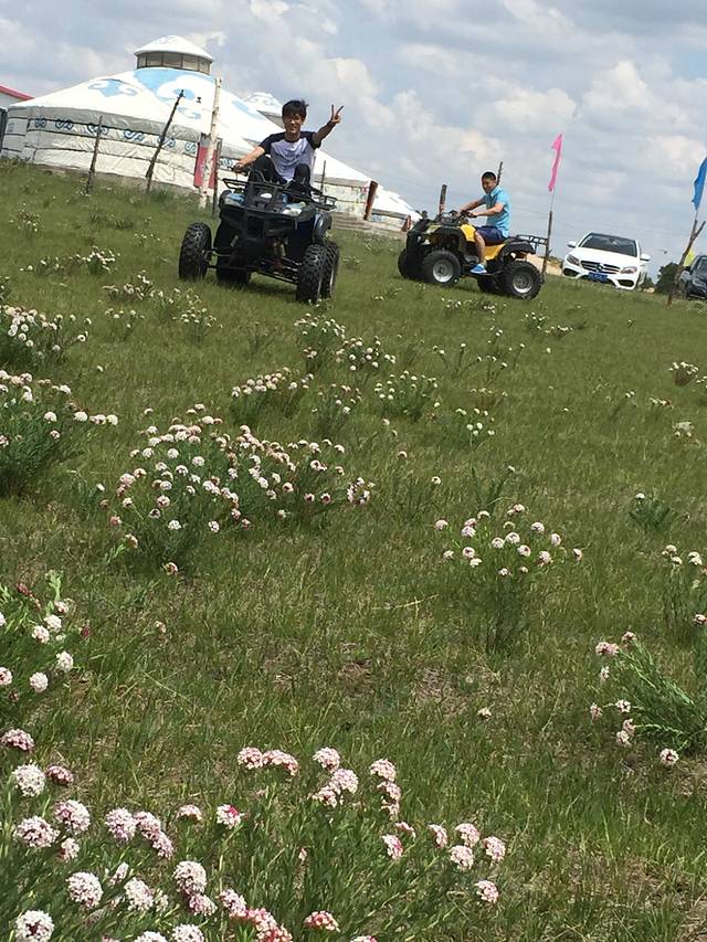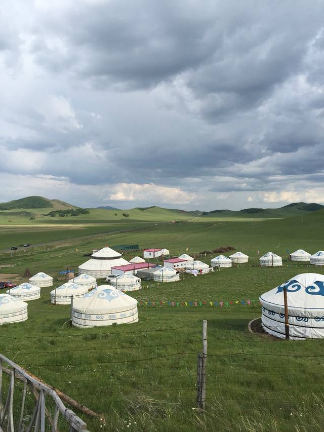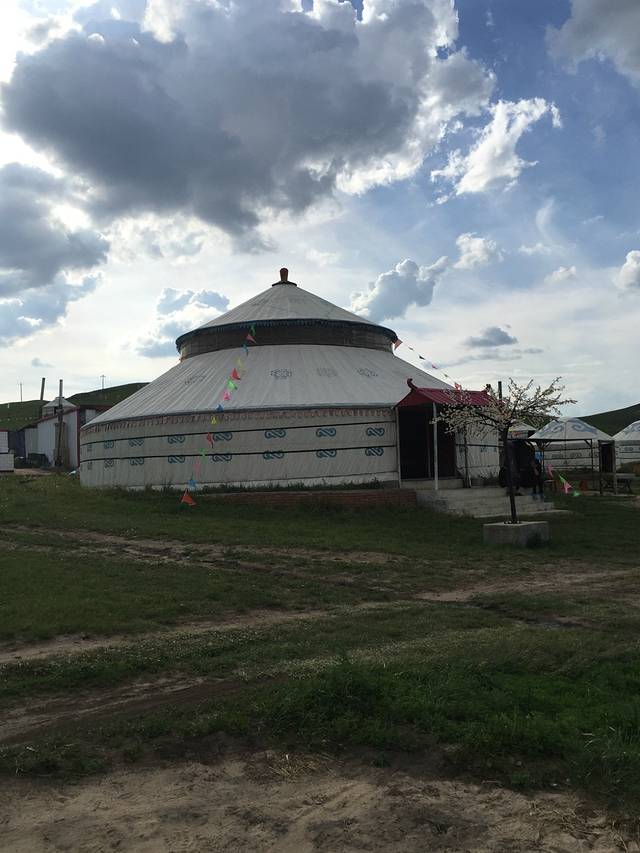 开车去乌兰布统,大概需要四个小时,山路不好走,弯道特别多,很考验技术。但是沿路的风景特别美,可以沿途好好欣赏美丽的草原,很棒!!!在名字叫”锡林葛尔“的蒙古包吃的,中午吃的手把羊肉,羊杂汤,还有草原特有的一种野菜,外形酷像”山楂糕“酸酸甜甜的等好多菜,晚上住的蒙古包好舒服哦,