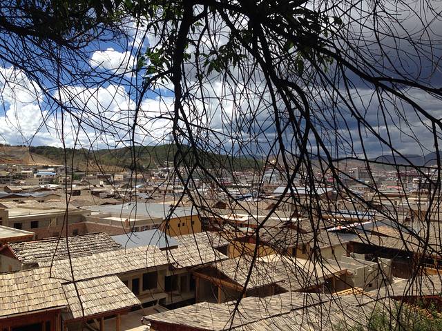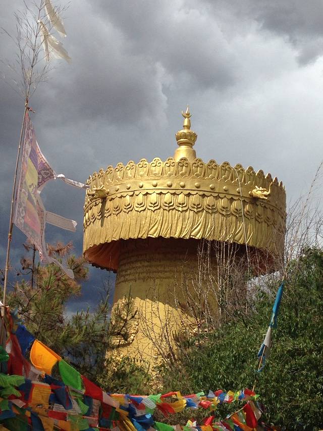 差不多中午了,导游带我们去吃饭,990的不包饭。估计都累死了,没几个人吃饭,反正饭是不怎么好吃。又坐了估计两三个小时终于到了独克宗,据说是最大的转经筒。好多人在那转。确实挺大的。在这里游览了差不多四十分钟。