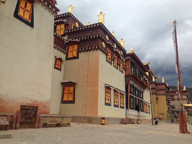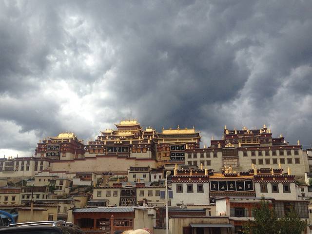 今天的最后一个地方是去了松赞林寺,门票是128差不多。先去坐观光车到寺庙脚下,从远处看整个寺庙还是很大,很壮观的,大家都称他小布达拉宫嘛!走进去的时候会有专门的导游给你讲解。关于寺庙的格局。意义啊。讲了一些天葬什么的,然后就是自己逛寺庙一圈。