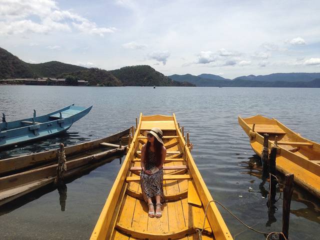 今天八点钟就从丽江出发,来到泸沽湖。我们就在网上团购了一件客栈:蓝岸的湖畔。说实话这个客栈和我们之前住的差远了 但是价格也差不多。好想念阿姨和叔叔。我们大概下午去1:40就到了泸沽湖,我们在路上真是感觉骨头都要散架了 那个路啊 简直是在坐蹦蹦车。但是一看到泸沽湖。我就真的惊呆了。真的好美 远远看着那个湖,真的是美的。进了泸沽湖,也是先去客栈,然后洗澡洗头。晚上就在客栈随便吃了点东西就出去了。