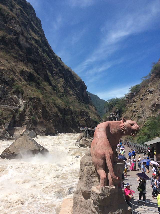 早上八点有车来涑河古镇门口接我们,是个中巴车,导游叫卓玛,我们大概坐了2个小时之后到达了一个什么长江第一湾的地方,让大家拍照。上厕所,导游顺便领取氧气罐羽绒服(晚上要用),后来再坐了一个多小时就到了虎跳峡,然后一个小时游览时间,可以选择坐轿子下去,好像是200一人,虎跳峡,说实话我是不怎么感兴趣,因为就是河水流的很凶猛的样子,但是下去要走2000多步阶梯。当你往回走的时候才是想死的节奏。
