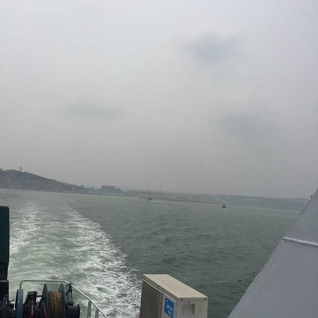 去长岛的客船,沿途还能看成群的海鸥,如果上甲板上观光有个老头站在台阶下收每人10元,我们没交,觉得很不公平,我们船票里应该都有的啊,咳,谁叫到人家地盘了呢,但是随着船开远了,后半路程那老头也消失了,也就没人收费了,我们就偷偷趁着没人赶紧上了甲板,建议大家想上甲板的,不要一开船就上,后半路程没人收费了再上,我们回来的船上,全程甲板上没人收费