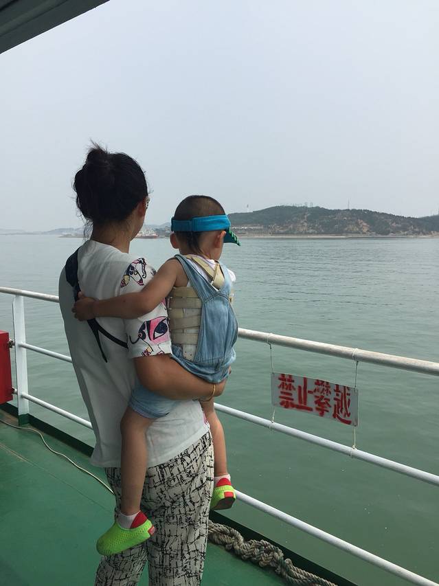 k285硬卧早晨7点到烟台,下了火车,附近吃了早点,之前定好渔家院的老板帮助联系好的车来烟台火车站接我们,从烟台一个小时到蓬莱港,我们三个大人一个小孩120块,其实还是很划算的,行为全程80公里呢,到了码头就买了船票一分钟都没耽误,上了船就开航了,船行驶了40多分钟,到了长岛码头,渔家院的车来码头接上我们,直奔住地,到了博爱渔家院大概12点了,阿姨给我们准备好了午饭,美美的饱餐一顿完了直奔床上,因为夜里火车上根本就睡不好,所以我们都睡了整个下午,睡醒已经五点多了,就到离住处最近的海边溜达溜达