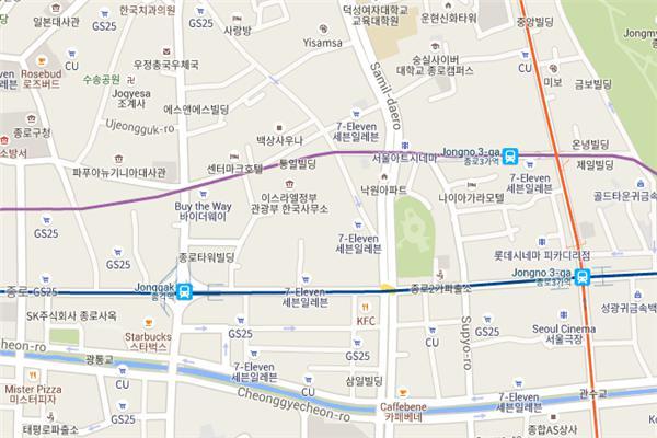 1)从首尔地铁1号线钟阁站3号出口出来步行3分钟