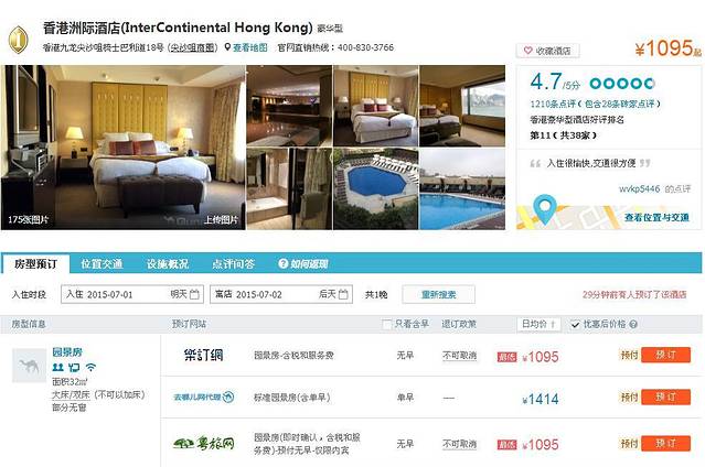 就我去年和今年预定过的3家香港酒店价格对比分享给大家。都是通过“去哪儿”网站预定的,可靠方便。