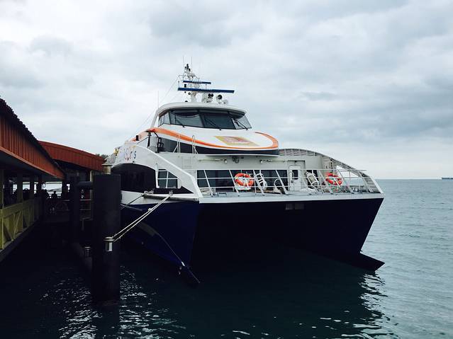找到这个蓝色字母的柜台。里面墙面上印有2只海豚的logo,请提前90分钟到达,以及办理登船手续。办理时需要出示护照以及酒店订单和船票订单。工作人员会告诉你几点登船几点开始托运行李我们是提前在淘宝买了船票。269一人往返价,含托运行李
