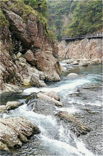 与闻名天下的雁荡山相比,位于永嘉的楠溪江更显秀美灵气。楠溪江水浅弯多,这种通航的不便反而保护了它原始古朴、纯净柔和的那份天然野趣。这里最大特点就是水清见底,加上两岸多是奇岩险峰,更显得水色碧透。