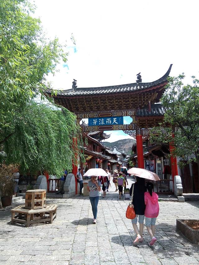 从忠义市场坐11路,走二十分钟左右就到束河古镇,管理也是很松不用买门票。