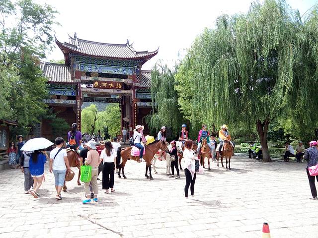 刚来到门口就见到几个姑娘骑着大马合影,真帅气。而且束河确实比丽江古城物价低,容易砍价。