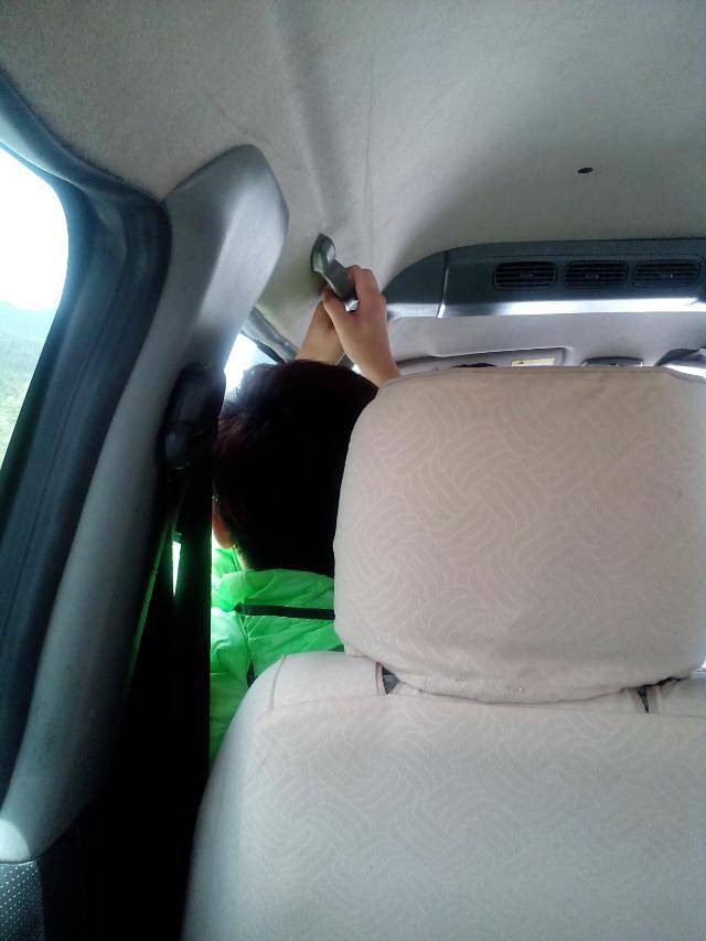 我们来的稍晚,只能我最副驾驶,宝宝最在最后排。起初路况比较好,之后太颠簸不得不系上安全带,其中经过一段渣土路几乎看不见前方道路,有些刺激,同车的一个姑娘被甩得晕车难受。