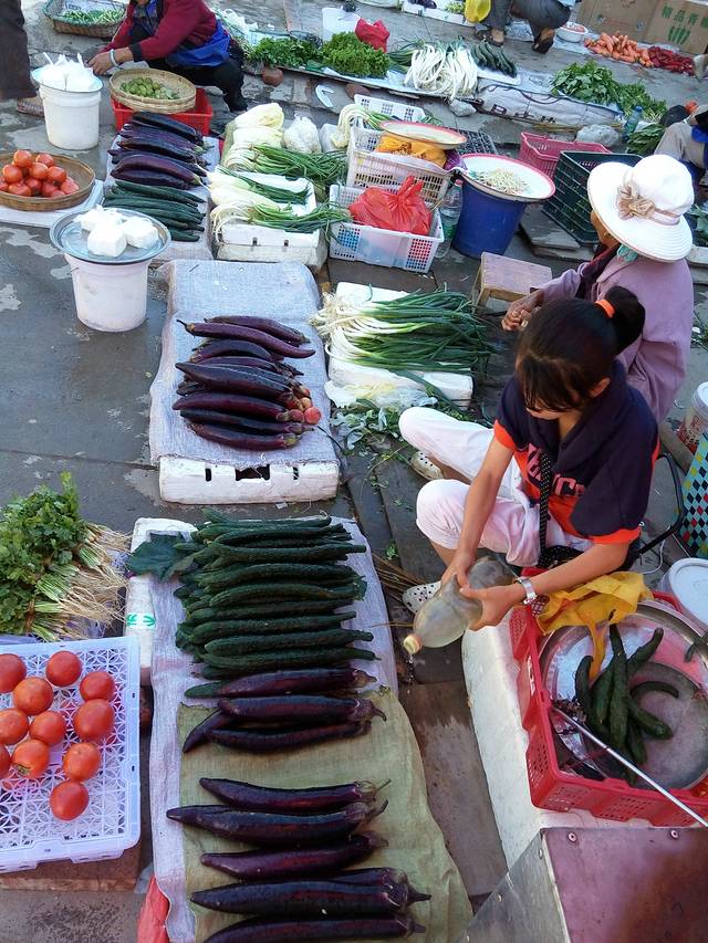 早市是本地的村民将自己蔬菜、水产等拿到集市上销售,很热闹