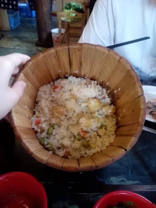 这桶米饭加上土鸡真是绝配