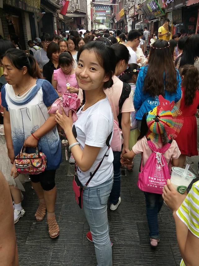 人潮人海中来张街拍。旁边好多家长都领着孩子,所以出门在外,我得领着你。