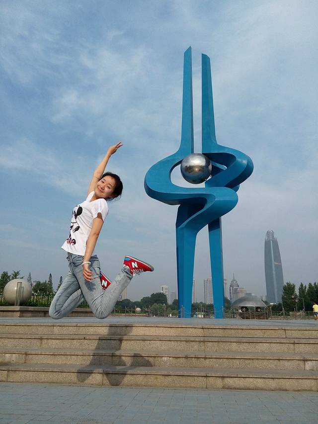 第一站就是去泉城广场找那个健身的老爷爷(等看第三季),可惜等了好长时间都不在,还想找他再合影呢。于是就在这陪着宝宝在这里各种拍照,挑一张身体扭曲幅度最大的照片吧