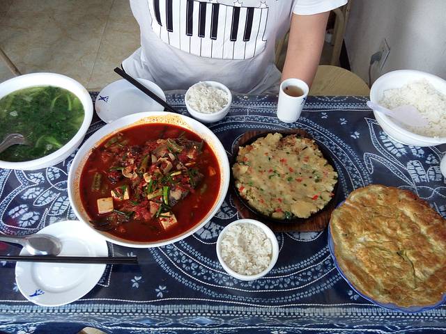看团购上的介绍,卷饼的做法与家里的很像,想带宝宝来体验一下。前几天想来吃饭,结果古城停电没法做。今天人来了,饼没有送过来。点了两三个菜吃米饭,菜挺油的,味道一般般。还是等本大人回家再亲自下厨吧。