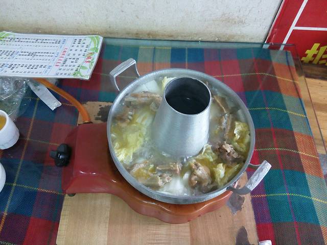 腊排骨最佳的食用时间应该是在冬季。可毕竟大老远来一次就尝尝吧。锅子分为大中小,其实真差不了许多,也多过给你几块儿吧。我们两个人吃的是小锅,大概十多块儿排骨(人家说,看着加腊排骨好不好,就看他给你的是肋排和是脊骨。这家肋排挺多的)再要了几样蔬菜。口味上来说,锅底是咸鲜口味,单吃腊排骨就还不错,口味重,可以蘸调料吃。调料是已经配好的,要用水化开,里面内容丰富,闻着就香。算上宝宝在吃不下的情况下赏的一块排骨,我总共吃了四块。宝宝吃了十几块,像个男人一样去战斗……