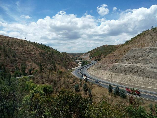 从昆明出发很久之后,才看到大山之中的公路,确实比火车跑得快